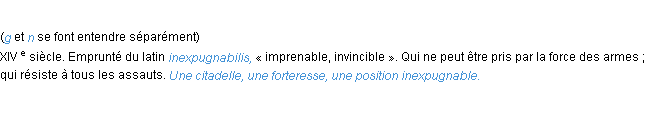 Ancienne définition du mot « inexpugnable » par l’Académie Française (édition de 1798).Merci à Gérard et Mélissa pour la numérisation du mot inexpugnable.