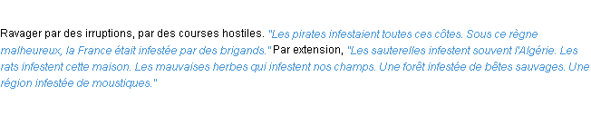 Ancienne signification éditée en 1835 pour le terme « infester » par l’Académie Française.