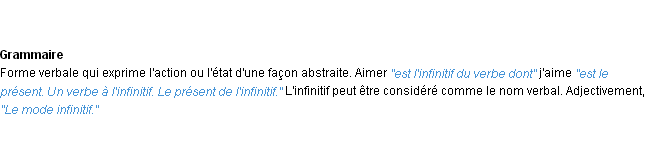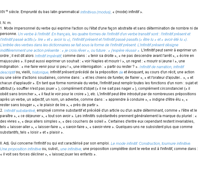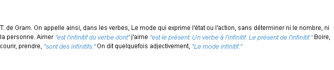 Ancienne signification éditée en 1835 pour le terme « infinitif » par l’Académie Française.