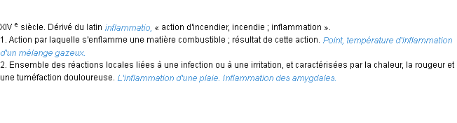 Ancienne signification éditée par l’Académie Française, année 1798.Merci à Berthe et Marie pour la numérisation du mot inflammation.