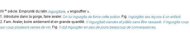 Signification du terme « ingurgiter », parution de 1932, dictionnaire académique Français.