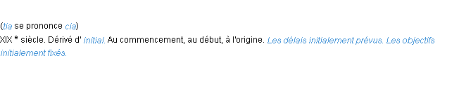 Définition du mot « initialement » par l’Académie Française (édition de 1986).