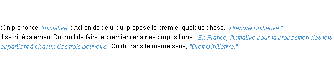 Signification du terme « initiative », parution de 1932, dictionnaire académique Français.