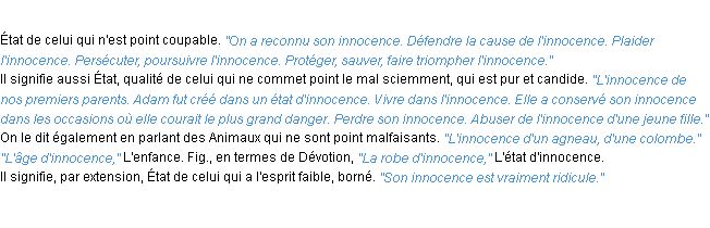 Ancienne définition académique pour le terme « innocence » (parue en 1835).