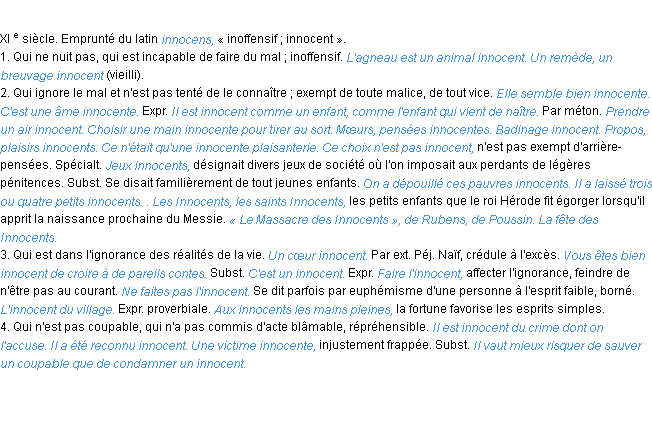 Signification du terme « innocent », parution de 1932, dictionnaire académique Français.