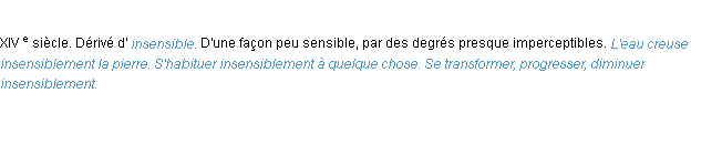 Signification du terme « insensiblement », parution de 1932, dictionnaire académique Français.
