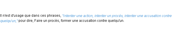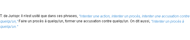 Ancienne signification éditée en 1835 pour le terme « intenter » par l’Académie Française.