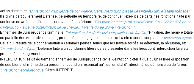 Ancienne définition du mot « interdiction » par l’Académie Française (édition de 1835).