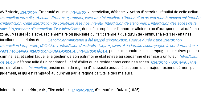 Définition du mot « interdiction » par l’Académie Française (édition de 1986).