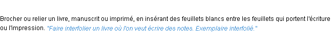 Définition développée dans dictionnaire d’Emile Littré (ancienne édition de 1876).Merci à Emmanuelle et Odile pour la numérisation du mot interfolier.