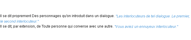 Définition académique pour le terme « interlocuteur » (parue en 1932).