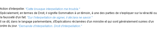 Définition de l’Académie Française (édition de 1986) pour le mot « interpellation ».