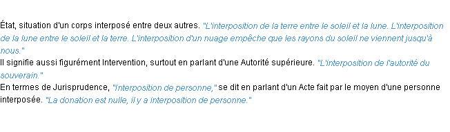 Définition « interposition » du dictionnaire académique Français, parution de l’année 1986.