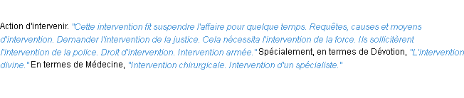 Définition de « intervention » de source académique (Académie Française, parution de 1932).
