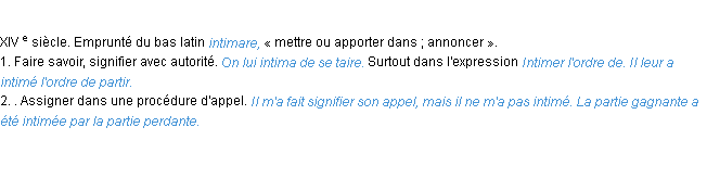 Définition de « intimer » de source académique (Académie Française, parution de 1986).