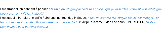 Définition de « intriguer » de source académique (Académie Française, parution de 1986).