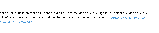 Définition du mot « intrusion » par l’Académie Française (édition de 1986).