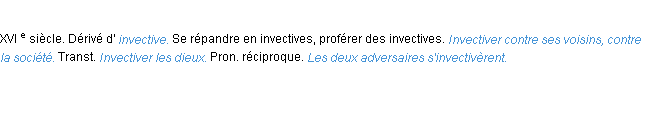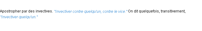Définition académique pour le terme « invectiver » (parue en 1986).