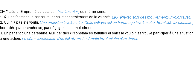Définition « involontaire » du dictionnaire académique Français, parution de l’année 1986.