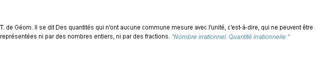 Définition du mot « irrationnel » par l’Académie Française (édition de 1986).