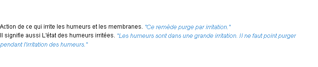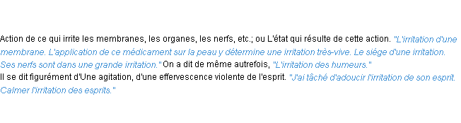 Ancienne définition académique pour le terme « irritation » (parue en 1835).