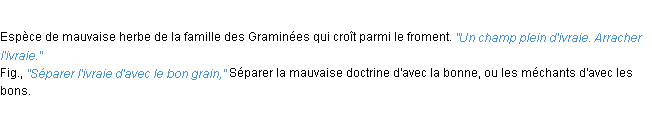Ancienne définition de l’Académie Française (édition de 1835) pour le mot « ivraie ».