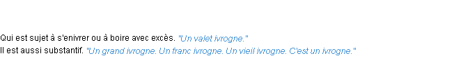 Ancienne signification parue en 1798 dans dictionnaire de l’Académie Française.Merci à Basile et Patrice pour la numérisation du mot ivrogne.