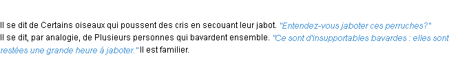 Ancienne signification éditée en 1835 pour le terme « jaboter » par l’Académie Française.