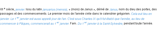 Signification du terme « janvier », parution de 1986, dictionnaire académique Français.