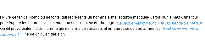 Ancienne définition du mot « jaquemart » par l’Académie Française (édition de 1798).