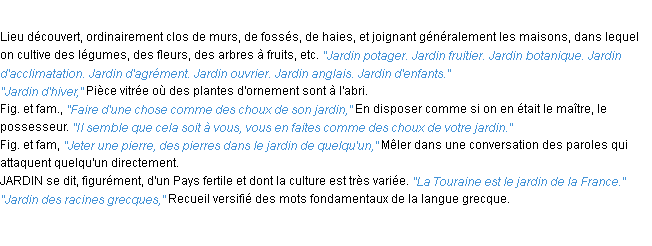 Signification du terme « jardin », parution de 1932, dictionnaire académique Français.