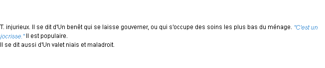 Ancienne définition académique pour le terme « jocrisse » (parue en 1798).Merci à Sylvianne et Corinne pour la numérisation du mot jocrisse.