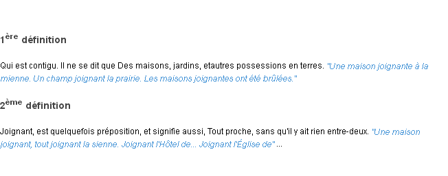 Définition de l’Académie Française (édition de 1932) pour le mot « joignant ».