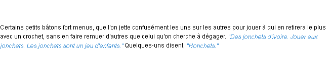 Définition de « jonchets » de source académique (Académie Française, parution de 1986).