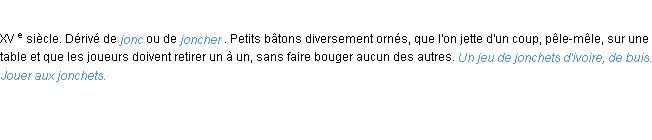 Définition « jonchets » du dictionnaire académique Français, parution de l’année 1932.