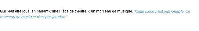 Définition du mot « jouable » par Emile Littré (édition de 1876).Merci à Pascal et Jourdain pour la numérisation du mot jouable.