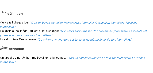 Signification éditée en 1932 pour le terme « journalier » par l’Académie Française.