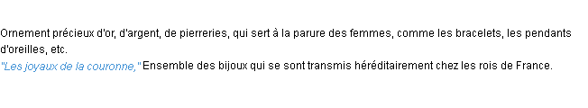 Ancienne définition académique pour le terme « joyau » (parue en 1835).