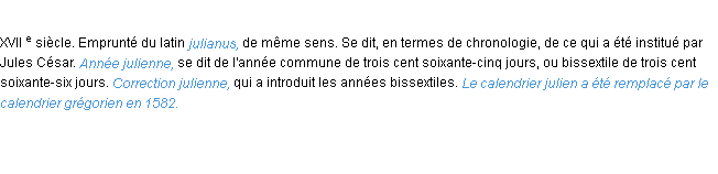 Signification du terme « julien », parution de 1876 (dictionnaire le Littré).Merci à Charlot et Chloé pour la numérisation du mot julien.