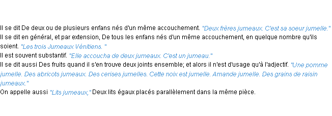 Définition « jumeau » du dictionnaire académique Français, parution de l’année 1932.
