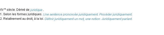 Définition de l’Académie Française (édition de 1986) pour le mot « juridiquement ».