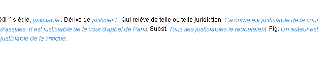 Définition « justiciable » du dictionnaire académique Français, parution de l’année 1932.