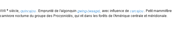 Signification éditée en 1986 pour le terme « kinkajou » par l’Académie Française.