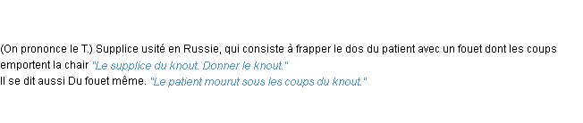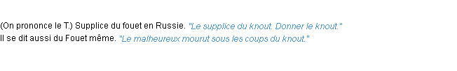 Définition d’Emile Littré (édition de 1876) pour le mot « knout ».Merci à Olivier et élise pour la numérisation du mot knout.