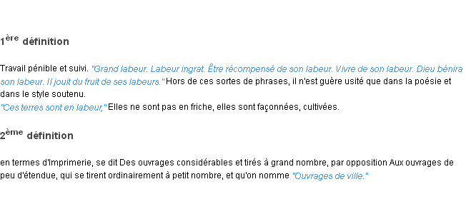 Ancienne signification éditée en 1835 pour le terme « labeur » par l’Académie Française.