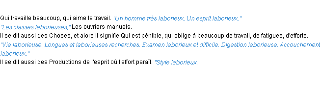Signification éditée en 1932 pour le terme « laborieux » par l’Académie Française.