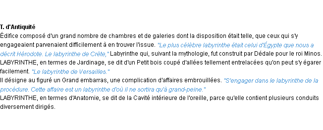 Définition du mot « labyrinthe » par l’Académie Française (édition de 1932).