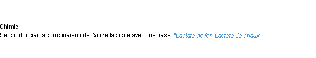 Signification du terme « lactate », parution de 1986, dictionnaire académique Français.