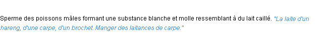 Ancienne signification du terme « laitance ou laite », parution de 1835, dictionnaire académique Français.