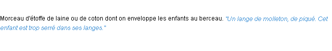 Définition « lange » du dictionnaire académique Français, parution de l’année 1986.